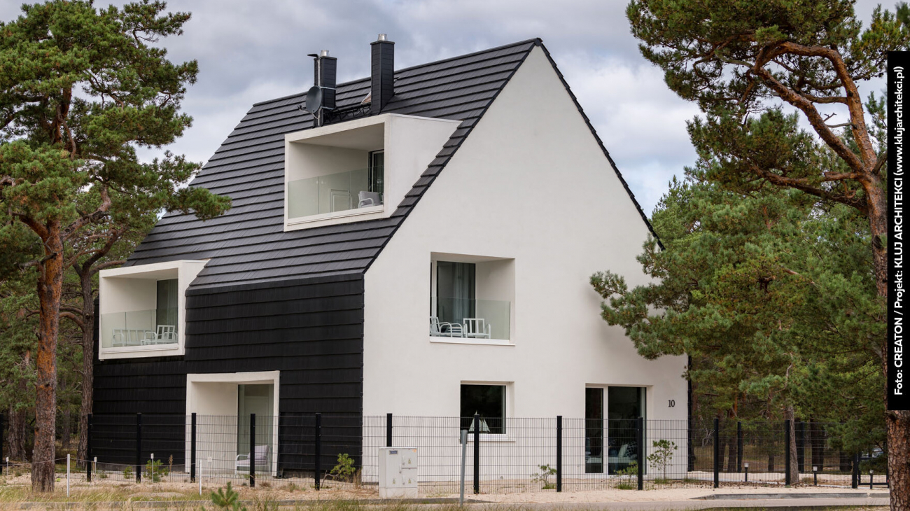 Płaska dachówka stała się skrótem myślowym dla nowoczesnego domu. Daje efekt równej płaszczyzny, dzięki czemu dach nie „gra pierwszych skrzypiec”. Coraz większym zainteresowaniem cieszą się także większe formaty, które ograniczają liczbę podziałów na połaci i przyspieszają montaż.