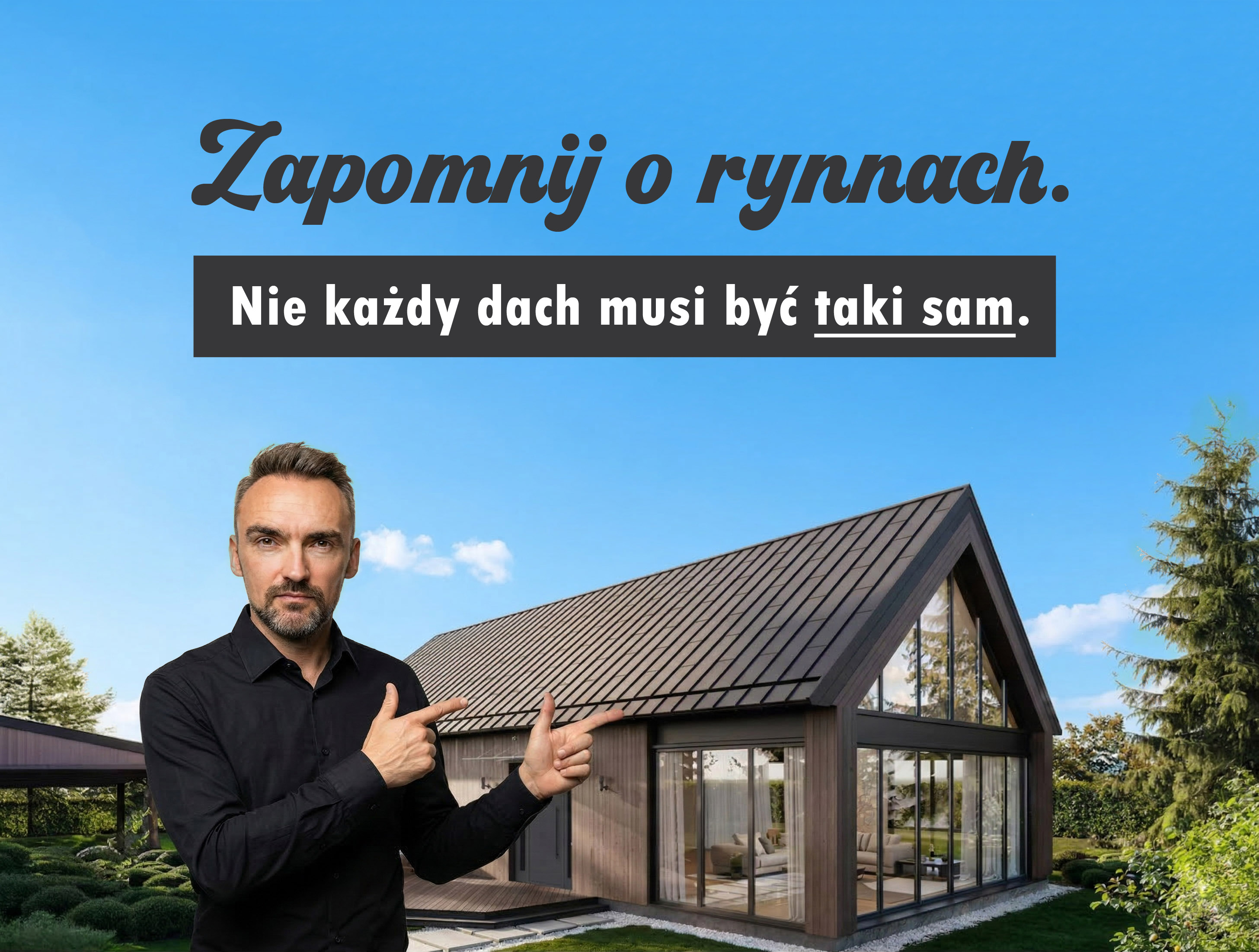 Sam w sobie nie jest problemem. Problem pojawia się dopiero wtedy, gdy nowoczesną bryłę próbujemy połączyć z klasycznym sposobem wykończenia krawędzi dachu. Widoczna rynna i pas nadrynnowy bardzo często zaburzają proporcje i „domykają” budynek w sposób, który nie był założony w projekcie.